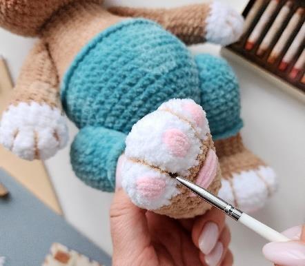 With detailed step-by-step instructions, photos, and video tutorials, you’ll be guided through each stage of creation: shaping the head and cheeks, attaching the limbs with cotter pins for gentle movement, embroidering his nose and eyes, and even giving him a magical touch with pastel shading.